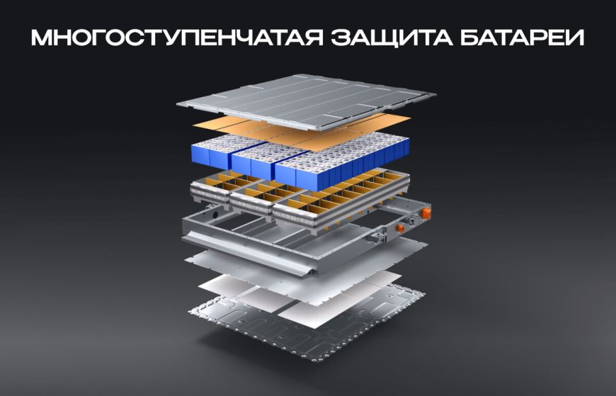 стали. Батарея электрического кроссовера обеспечена 5-уровневой защитой и