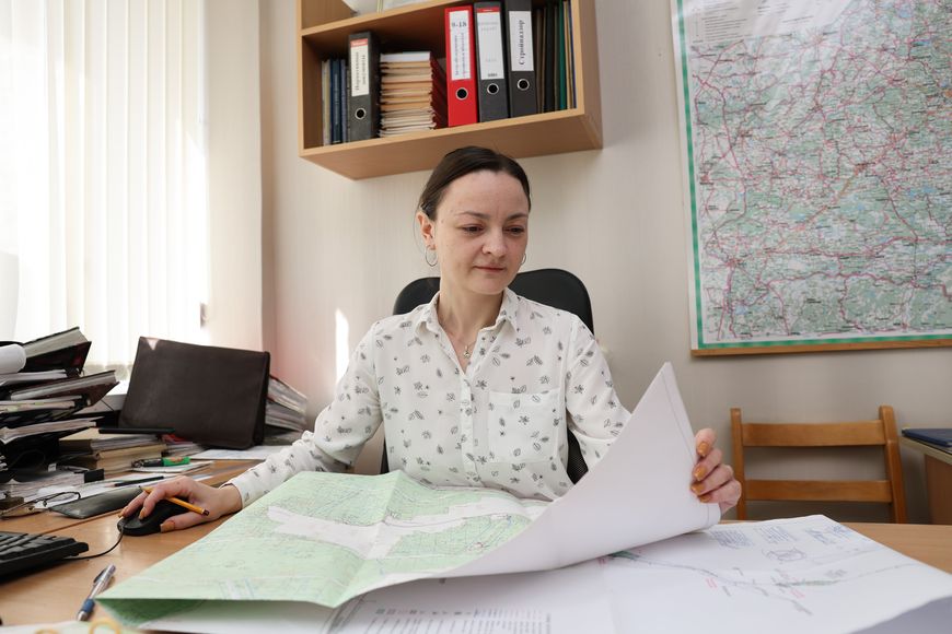 Ирина Никитина-Кунчевская пришла в РУП «Белгипроводхоз» в 2013 году. Как главный специалист ГВП №2, она проектирует мосты, водопропускные трубы, дамбы, пруды, дренаж и водоотведение. Разрабатывает проекты как для сельской местности, так и для городов. В том числе по благоустройству территорий – где проложить дорожки или посадить деревья.