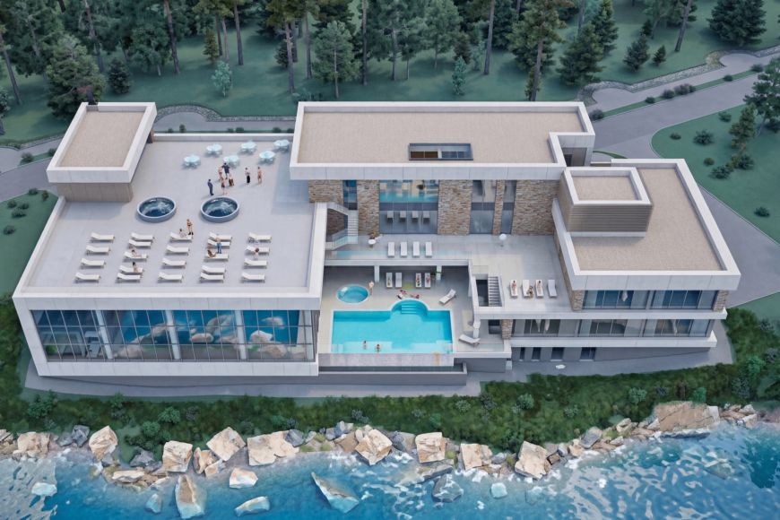 Предусмотрено строительство современного велнесс-центра на берегу. Лицевая сторона здания будет выполнена в виде панорамного витражного стекла, чтобы гости могли наслаждаться живописным видом на Нарочь прямо во время оздоровительных процедур. Кроме того, вдоль береговой линии появятся четыре двухэтажных дома для размещения гостей. Их концепция — полная интеграция в природный ландшафт.