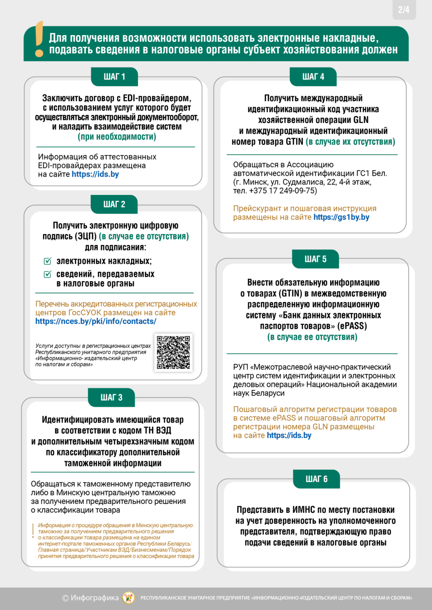 - постановлением Национальной академии наук Беларуси, Министерства финансов Республики Беларусь, Министерства по налогам и сборам Республики Беларусь и Министерства связи и информатизации Республики Беларусь от 18 декабря 2023 г. № 9/75/35/26 «Об утверждении структуры и формата электронных накладных и иных документов при осуществлении взаимной торговли», с изменениями и дополнениями, и др.